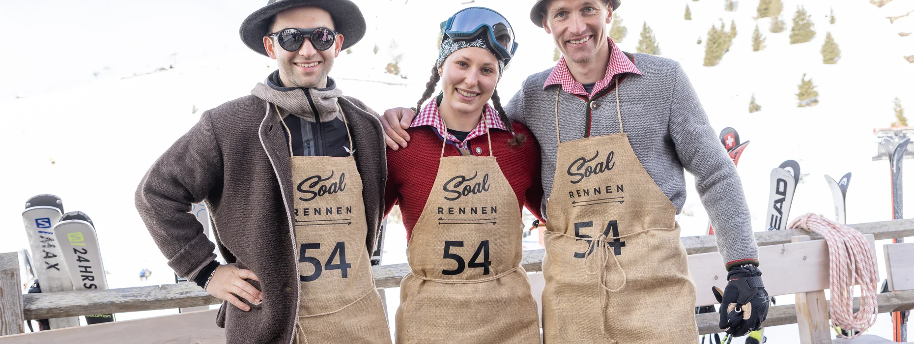 Beim traditionellen Soalrennen wird in 3er Teams in verschiedenen Kategorien gefahren. Die drei Rennläufer, verbunden mit einem Seil, bewältigen eine einfache Riesentorlauf-Strecke, um gemeinsam die Ziellinie zu erreichen. Das Zeitlimit liegt bei fünf Minuten, Überschreitung wird die Seilschaft disqualifiziert.