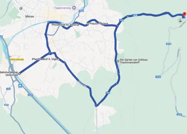 Die Linie 227 "Untermais - Meran 2000" fährt eine Runde über Obermais, Piavestraße/Tennis Meran bis zum Bahnhof Untermais und fährt über die Romstraße/Friedhof Untermais und Schloss Trauttmansdorff nach Meran 2000 zur Talstation in der Naif.