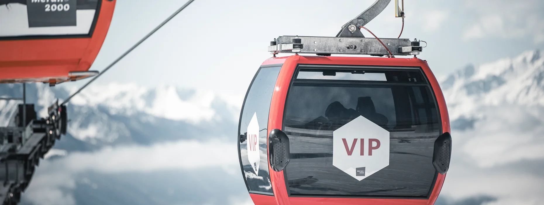 Die VIP Gondel ist für maximal 4 Personen und innerhalb der Betriebszeiten buchbar: info@meran2000.com.