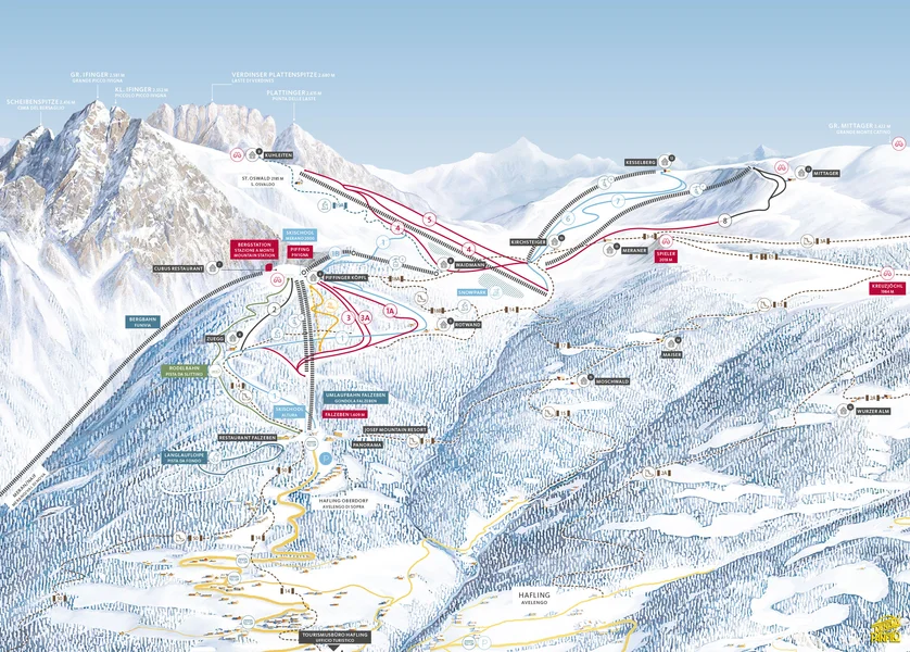 Das gesamte Gebiet auf Meran 2000 an nur einem Wandertag entdecken: Das 3-LIFT-TICKET ermöglicht dir jeweils eine Berg- und Talfahrt an einem Tag mit diesen drei geöffneten Anlagen: die Seilbahn Meran 2000, die Umlaufbahn Falzeben und die Kabinenbahn Naifjoch.