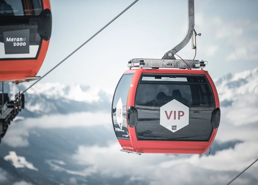 Die VIP Gondel ist an der Umlaufbahn Falzeben eingehängt, mit bequemen Ledersesseln ausgestattet und bietet Platz für maximal vier Personen. Die VIP Gondel ist für zwei Stunden buchbar, in denen du beliebig ein- und aussteigen kannst.