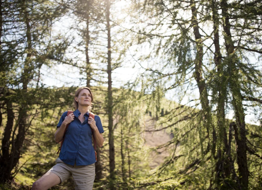 Über den "Rabenschnabel" führt die Wanderung zum Egger. Dem meist ebenen Steig weiter folgend gelangt man zum Greiterhof. Weiter geht es Richtung Schenna auf dem Taser Höhenweg (Markierung 40) bis zur Taser Alm.