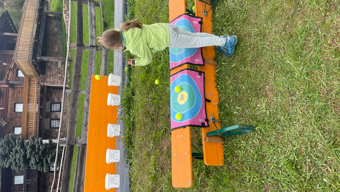 Various stations, created in cooperation with Jugenddienst Bozen Land, invite children to balance, jump, climb, try archery, and much more.