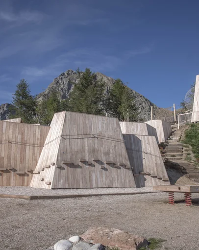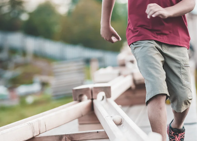 In the mountains, behind hills and rocks, amazing trails may be hidden, where young and old alike can experience the boundless freedom of outdoor movement. Just like in open terrain and on trails, a world full of adventure is concealed behind the structures of the new Outdoor Kids Camp. You can train your strength, courage, balance, and jumping skills on climbing walls, slacklines, tunnels, balance courses, and jumping stations.