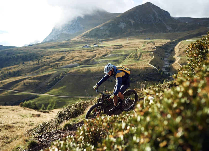 This simple MTB tour starts at the Falzeben car park above Avelengo. Take trail no. 14 first to Parete Rossa mountain hut and then on to Kirchsteiger mountain hut. Continue on the E5 European long distance path (trail no. 4) until you reach the Passo della Croce pass at 1984 m above sea-level.