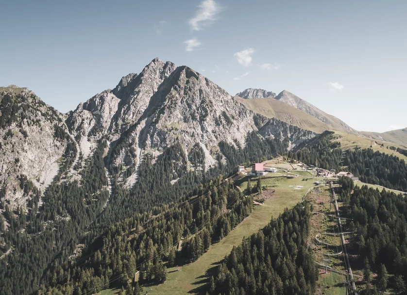 La cabina parte puntuale dal moderno edificio della stazione a valle della Funivia e inizia la sua traversata verso l'altopiano. Ampia e comoda, si libra silenziosa nell'aria. In appena sette minuti avrà raggiunto la stazione a monte – giusto il tempo per abbracciare con lo sguardo il paesaggio sottostante. Tappeti di rododendri e fitti boschi di abeti, nuda roccia e dolci prati, erti pendii e cime maestose: quello che si offre alla vista è un panorama affascinante, ricco di contrasti.
